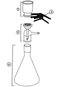 Borosilicate glass funnel, base and tubulated cap;anodized aluminum spring clamp; fritted glass filter support |
