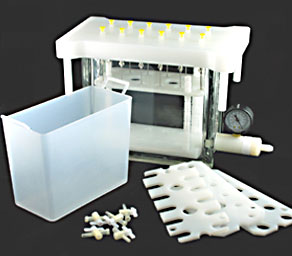 Multiple sample processing saves time and money. Female Luer inlets fit all male Luer tipped SPE tubes and cartridges. Compatible with standard Luer-tipped SPE and filtration columns. Glass chamber allows easy visual monitoring. Adjustable racks accommodate a variety of test tubes, vials and flasks. Available in 12 and 24-position for standard tubes.